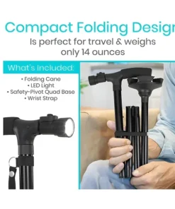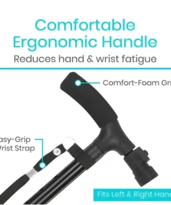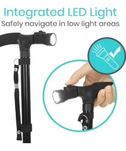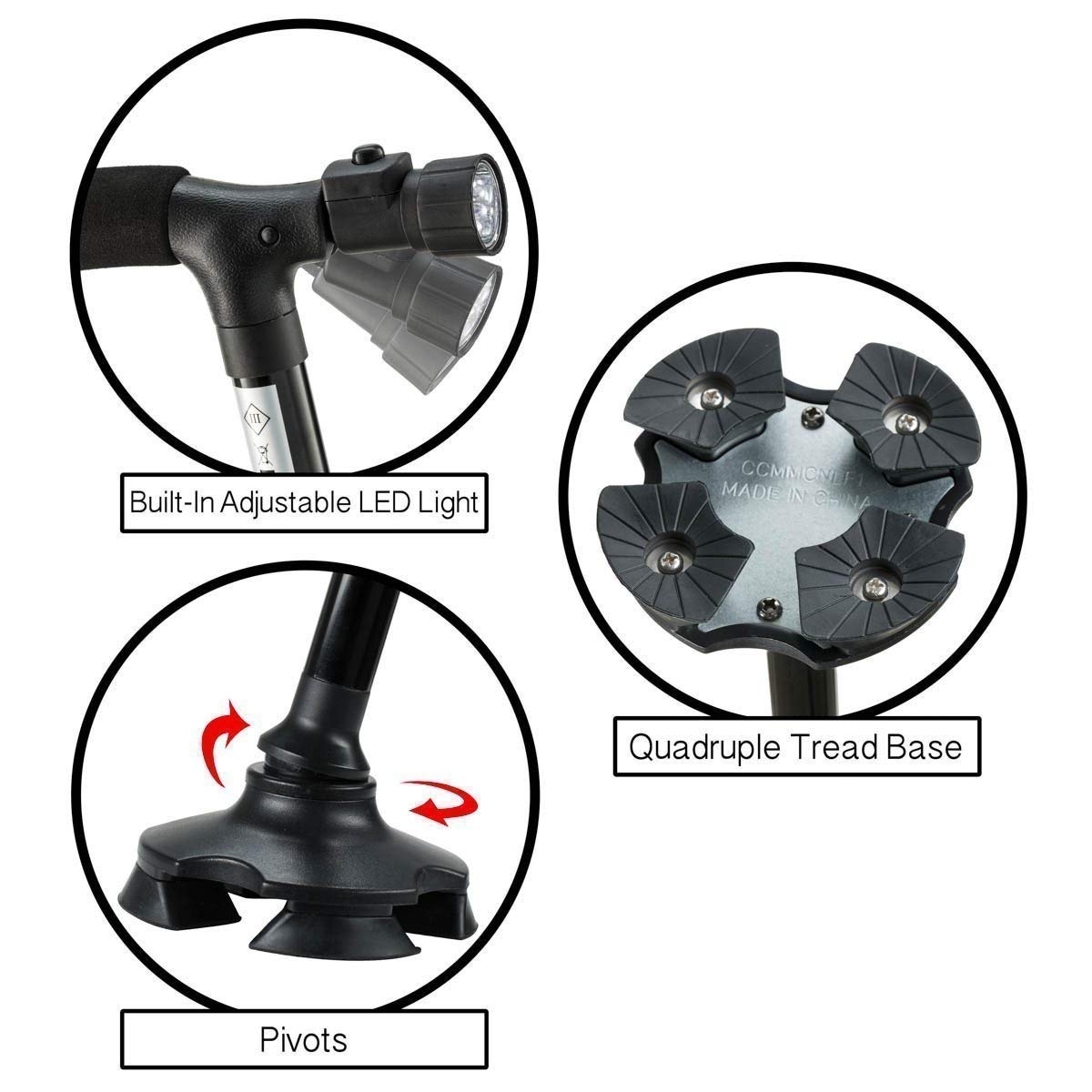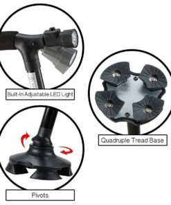 ✅Palica ima razširjeno vrtljivo glavo in razširjeno dno s štirimi točkami oprijema, kar omogoča večjo stabilnost, boljši oprijem na vseh površinah in omogoča palici samostoječo pozicijo, saj se palica ne bo prevrnila, ko boste spustili ročaj. Vgrajeno ima tudi LED LUČKO za lažjo hojo v temi, ima pa tudi nastavljivo višino od 82 cm do 94 cm.