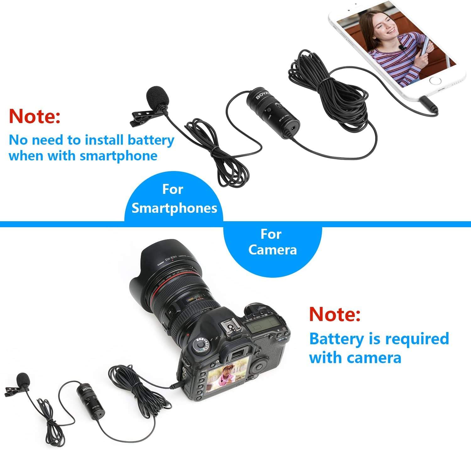 ▶️1X Boya vsesmerni kondenzatorski mikrofon Lavalier – 6 m avdio kabel