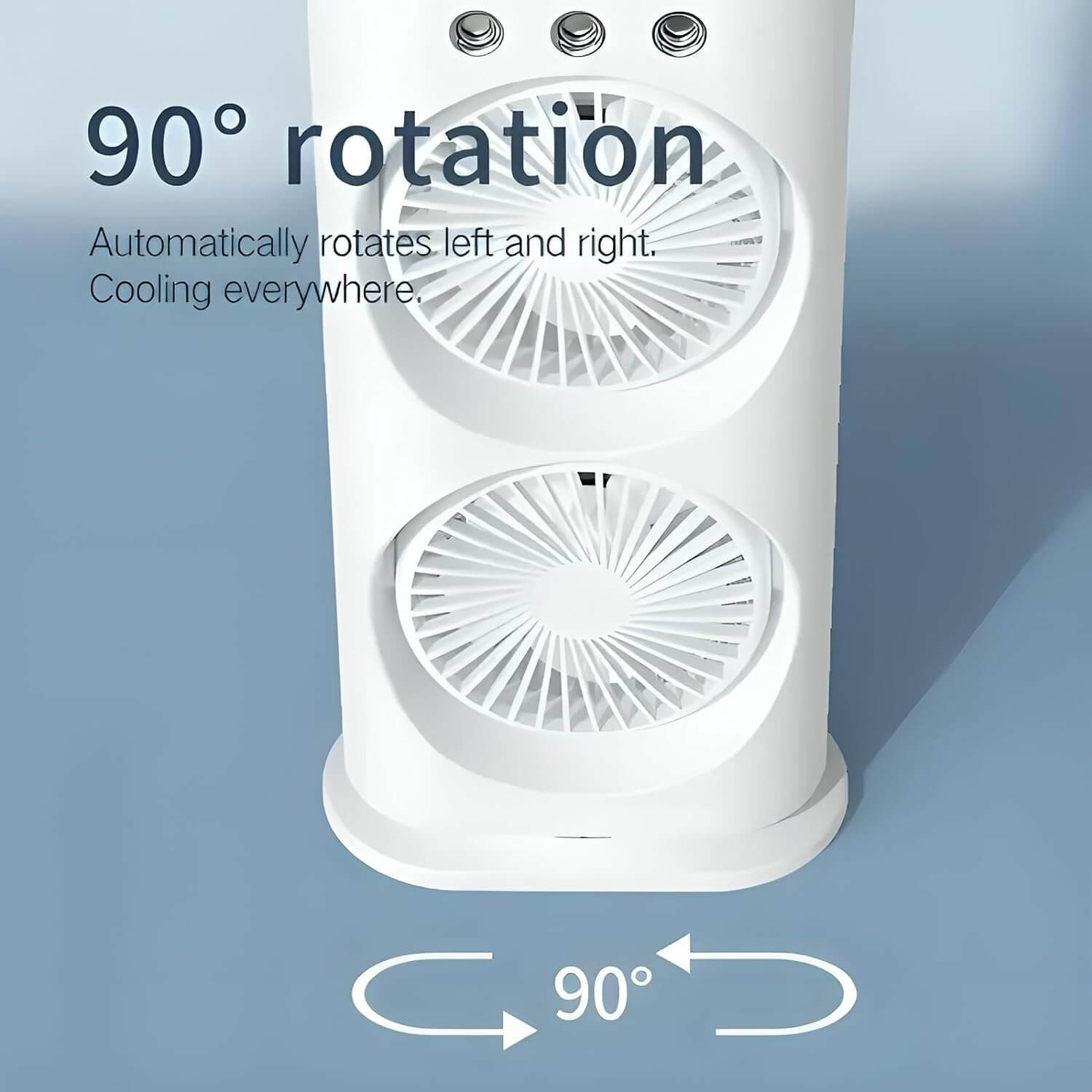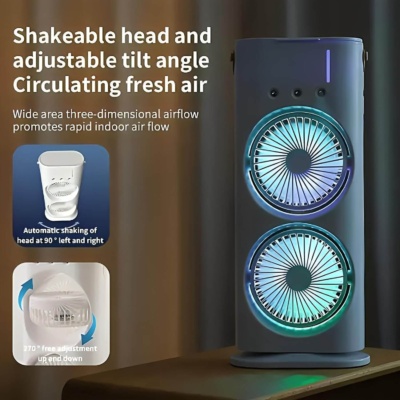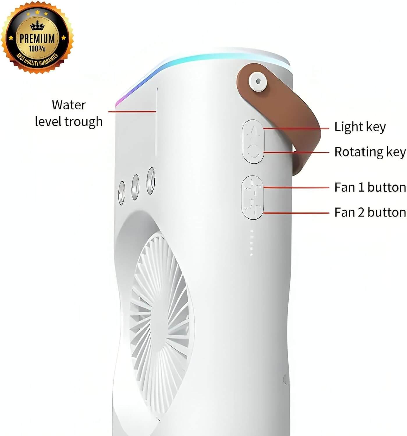 🍃Majhni stolpni ventilator: Znotraj hladilnega stolpa je najsodobnejši digitalni motor BLDC, ki poganja 2 hladilna ventilatorja s spremenljivo hitrostjo in 3 meglene šobe.