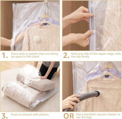 ✔️S shranjevanjem v vakuumskih vrečah prihranite veliko prostora, saj iz vreče posesate zrak in s tem zmanjšate njeno prostornino.