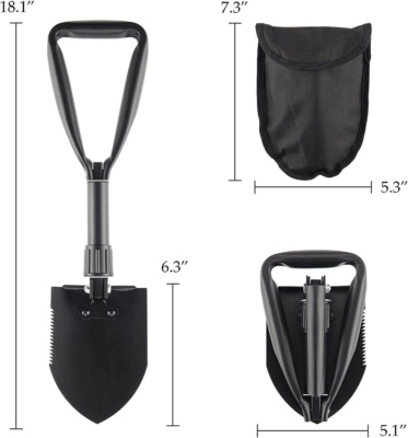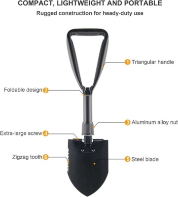 Kompaktna zložljiva lopata je nepogrešljiv spremljevalec med vožnjo, kampiranjem ali pohodništvom. Podpira vas, ko obtičite z avtom ali ko doma opravljate majhna vrtnarska dela. Lopata vam zagotavlja prepričljivo kakovost za občasno uporabo. Ima skupno dolžino 18.1″ je izdelana iz lahkega ogljikovega jekla. Njen širok trikotni ročaj se zaradi svoje ergonomske oblike udobno prilega dlanem.
