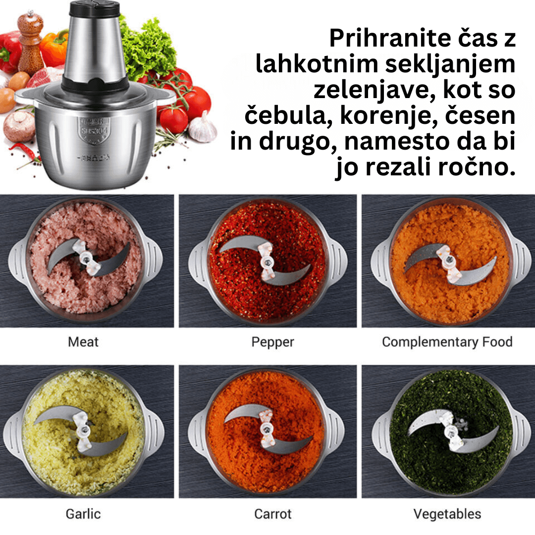 Prihranite čas z lahkotnim sekljanjem zelenjave, kot so čebula, korenje, česen in drugo, namesto da bi jo rezali ročno.