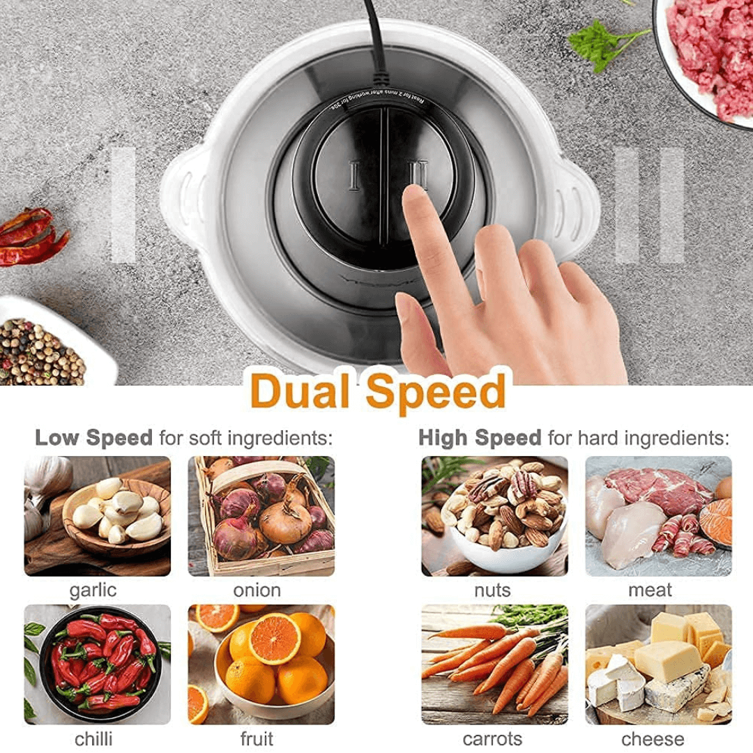 Aparat ponuja dve hitrosti delovanja, kar omogoča hitrejše sekljanje ali počasnejše rezanje.