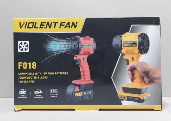 Violent Fan F018 tehta samo 315 g in se lahko hranijo v eno roko, zaradi česar je enostaven za prevoz.V 13Wh brushless motor proizvaja močan zračni potisk na 30 m/s in lahko nadaljuje do 110,000 vrt. / MIN (Uporaba Deset minut).