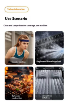 Lahko uporabijo za čiščenje računalniki, tipkovnice, avtomobili, kamere, kavni avtomati, itd.To lahko enostavno ročaj vse vrste, ki jih je težko očistiti razpoke; dejavnosti na Prostem so bistvenega pomena, je zraka, puhala lahko napihne suhe lase & čevlji & nogavice, čisto piknik preproge, udarec zrak, ko se začne prostem, ogenj, puhati dim, ko BBQ; Nepogrešljiv za fotografiranje, Turbo ventilator lahko udarec modela lase, oblačila, ustvariti popolno obliko, odlična zamenjava za okoren zraka, puhala.