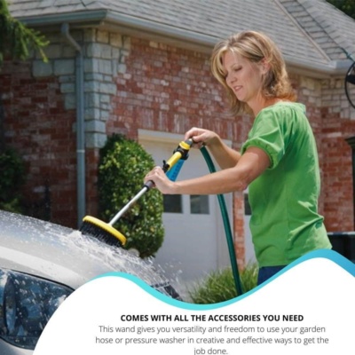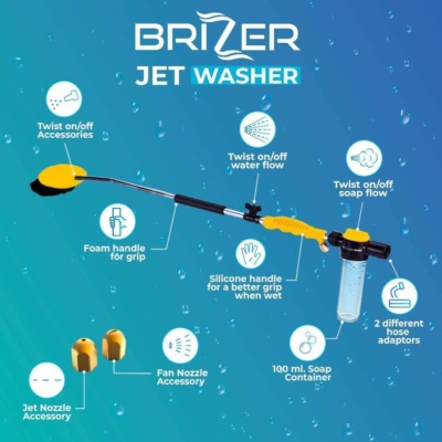 💦Visokotlačna vodna pištola Water Zoom je inovativna naprava, ki lahko vašo navadno cev za vodo pretvori v visokotlačno vodno črpalko, ki se lahko uporablja za čiščenje različnih površin in zalivanje vrta. Vodno pištolo enostavno priključite na standardno vrtno cev in prilagodite nastavek za pranje vašega avtomobila, terase, stolov in celo čolnov. Z njeno pomočjo enostavno odstranite umazanijo z oken, bazena, pločnika ali fasade vaše hiše. Narejena je iz kakovostnih materialov, ki zagotavljajo dolgotrajne visokozmogljive rezultate. Vodno pištolo lahko uporabite tudi za zalivanje vašega vrta s posebnim priloženim nastavkom.