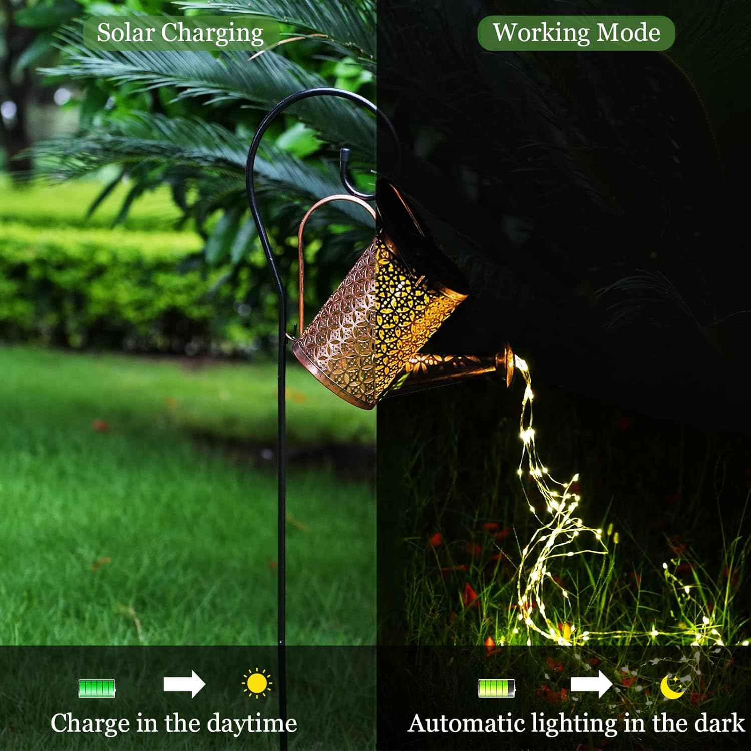 ✨3、Visoko kakovostne LED Osvetlitev: Toplo bela Led so visela na občutljivo bakrene žice, in rahel vetrič prinaša gibanja.V utripanja posnemajo tekoče vode učinek ustvarja edinstveno osrednja točka v svoje temne vrt in naredi vaš vrt, edinstveno.