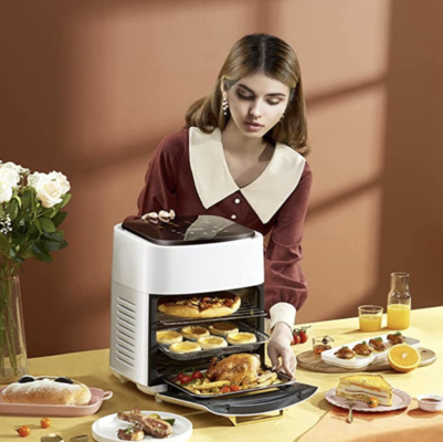 💖Enakomerno in zmogljivo ogrevanje: vroč zrak kroži okoli hrane za hitrejše kuhanje obrokov zahvaljujoč 1400W močnemu vgrajenemu ventilatorju in 360 ° sistemu za konvekcijo zraka.