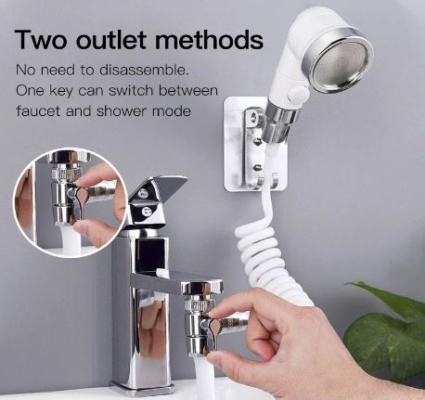 Ventil pipe odstranite in nanj namestite nov ventil s tremi izhodi. V stranski izhod namestite cev, ki je povezana s tuš držalom na steni. V paketu je tudi nosilec držala, ki ga namestite na steno, vanj pa položite ročko. Spodnji del ventila pa je namenjen za običajno tekočo vodo, ki teče iz pipe. Namestitev kopalniškega podaljška za vodo ne vpliva na curek vode, ki prihaja iz navadne pipe.