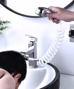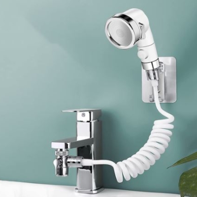 Z ročnim zunanjim držalom, ki je lahek, ergonomsko oblikovan in zelo udoben za držanje, lahko čistite, si umivate lase, kopate otroka in drugo z nežnim vodnim curkom, ki deluje kot prš oziroma dežne kaplje in ne povzroča kapljanja vode vse naokrog.